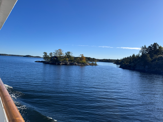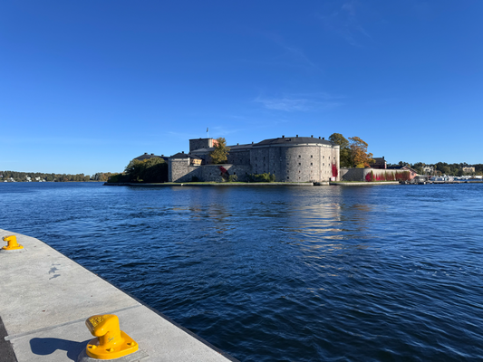 Während fünf Viertelstunden geniessen wir diese tolle Fahrt. Entlang von Wäldern, die den Herbst schon ein wenig erahnen lassen, und vorbei an unzähligen Inseln, nähern wir uns Vaxholm. Es folgt ein kurzer Fussmarsch durch das kleine Städchen. Da können wir in den unzähligen Schaufenstern den Immobilienmarkt recht gut studieren. Von 500t bis weit über 22m reicht die Palette. Und wäre es im Winter nicht so kalt und wären die Sonnenstunden um einiges höher, wir hätten sofort zugeschlagen.