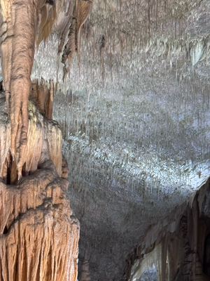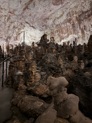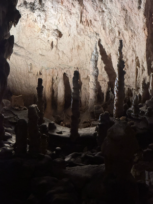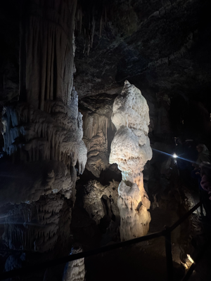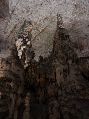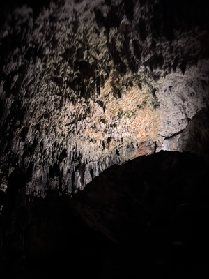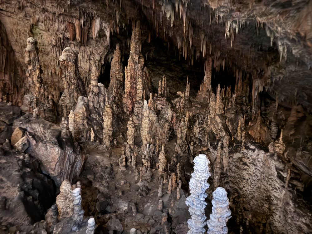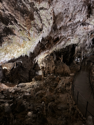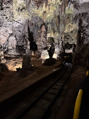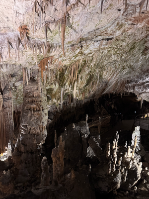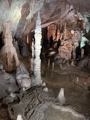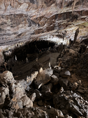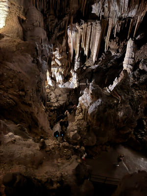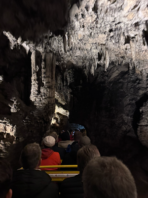 Eingeteilt nach Sprachgruppen werden wir zusammengepfercht und dann in die Grottenbahn verladen. Es geht 3km ins Innere. Kopf einziehen bitte! In einer riesigen Grotte hält das Züglein an. Hier heisst es aussteigen, denn von hier startet die 1.5km lange Wanderung durch die Höhle. Es stalaktitet und stalakmitet nur so, und zwischendurch stalagnatet es auch noch.